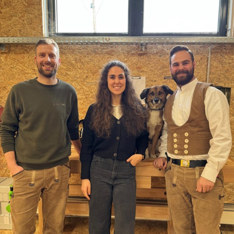 Seit unserer Schulzeit sind wir, Alexander und Lena (rechts), ein eingespieltes Team, welches sich nun den Traum einer Schreinerei verwirklicht. Gemeinsam mit Schreinergeselle Andreas (links) und unserem Feelgood-Manager Balu (Hund), legen wir besonderen Wert auf handwerkliche Präzision und individuelle Kundenwünsche.